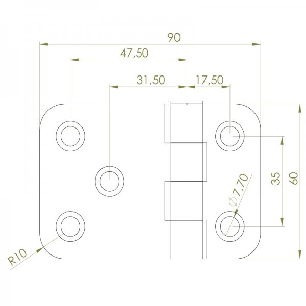 | Sac Yaprak Menteşe 90 x 60 x 3mm Genel Özellikleri |